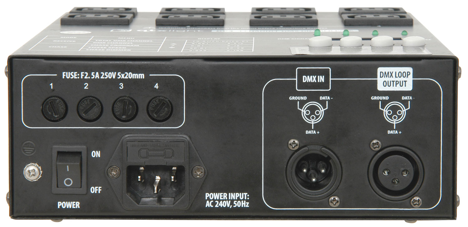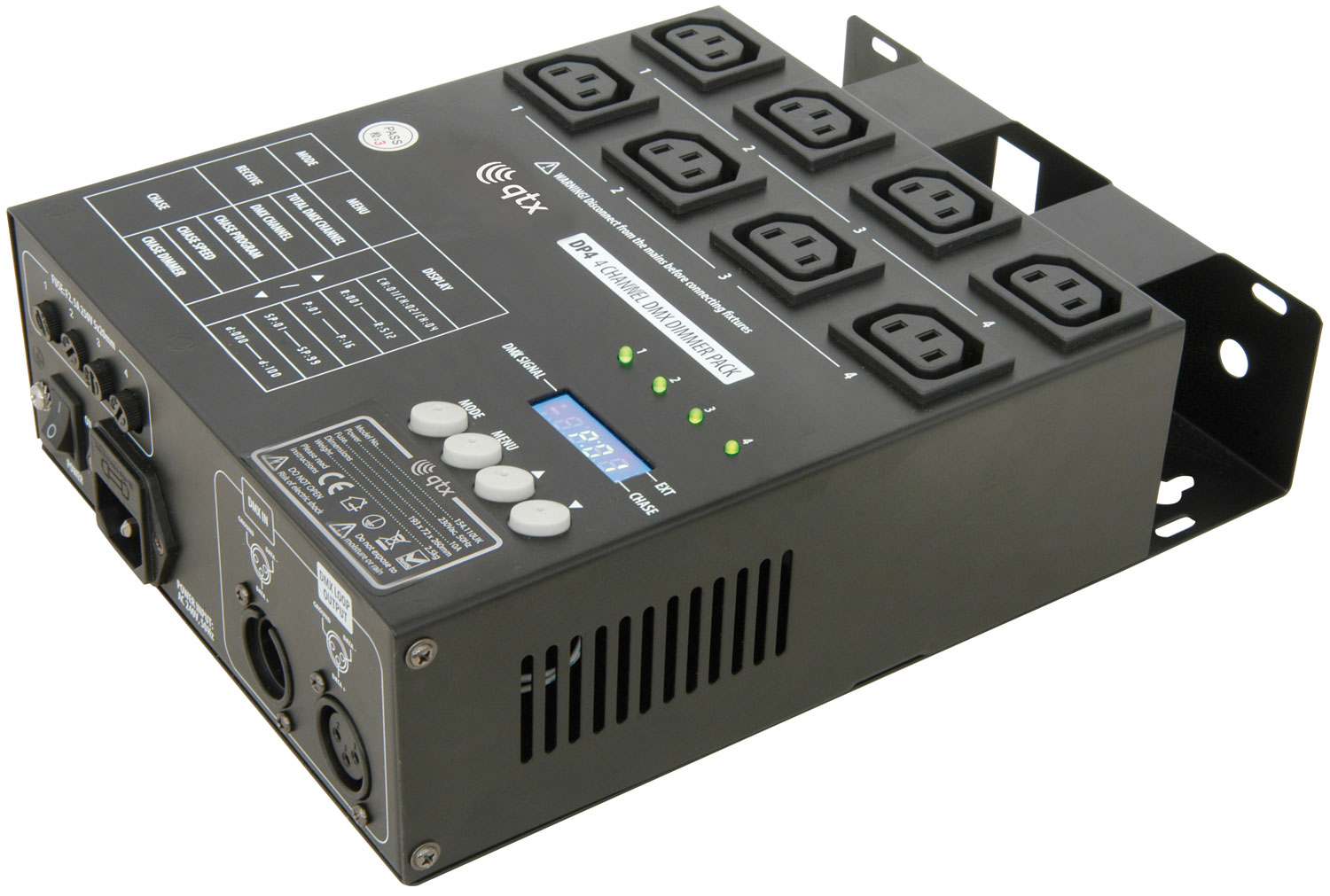Il QTX 4 Channel DMX Dimmer Pack è la soluzione ideale per gestire l’illuminazione nei tuoi eventi. Dotato di 4 canali, ciascuno con 2 uscite IEC, permette il controllo tramite DMX o l’utilizzo di 16 programmi chase integrati.