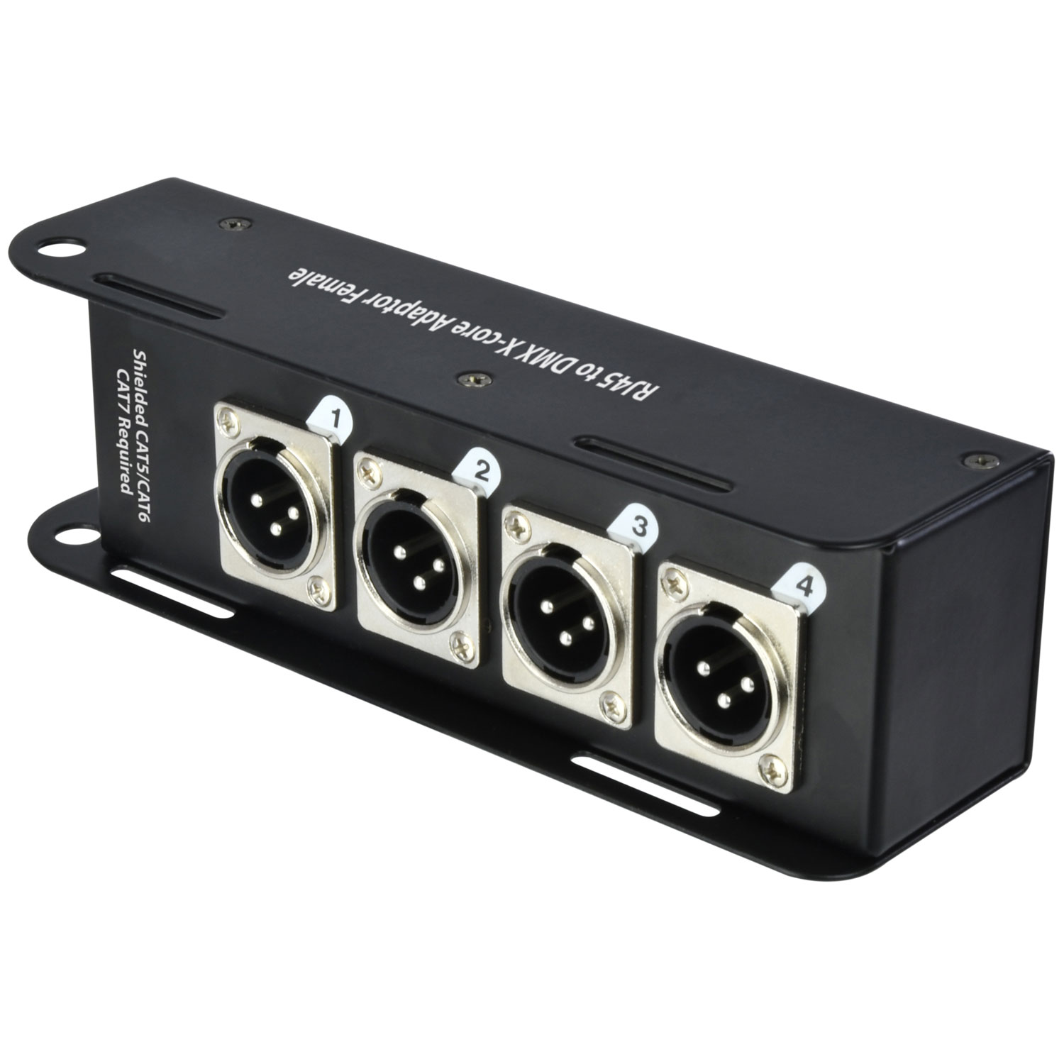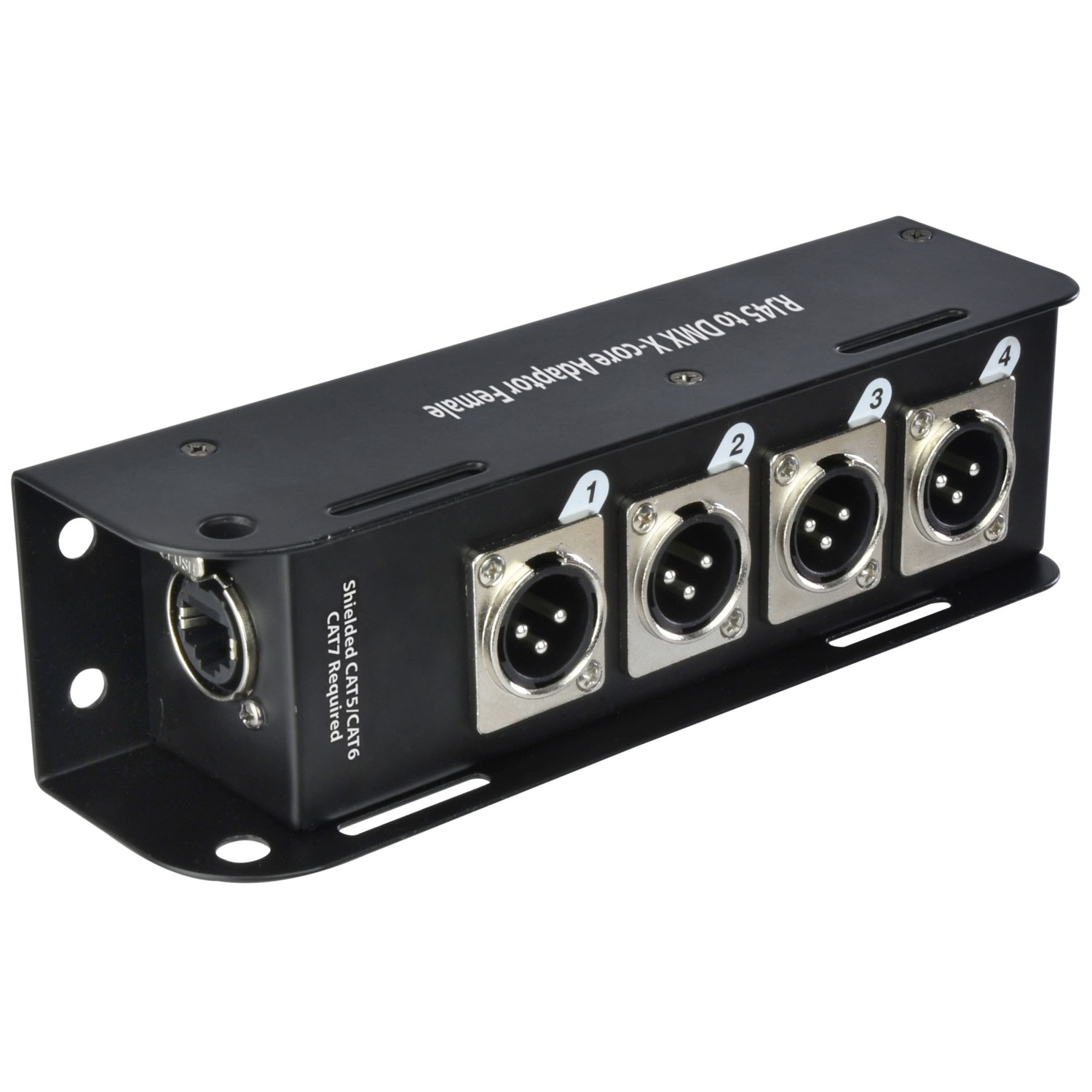 Questo sistema di adattatori multicore, utilizzato come coppia abbinata, consente di trasmettere fino a quattro canali di DMX su un singolo cavo schermato CAT5, CAT6 o CAT7. Costruito in un robusto involucro di acciaio, ciascun adattatore è dotato di un connettore RJ45 con blocco stile etherCON e connessioni XLR per garantire prestazioni affidabili sia in installazioni che in applicazioni live.