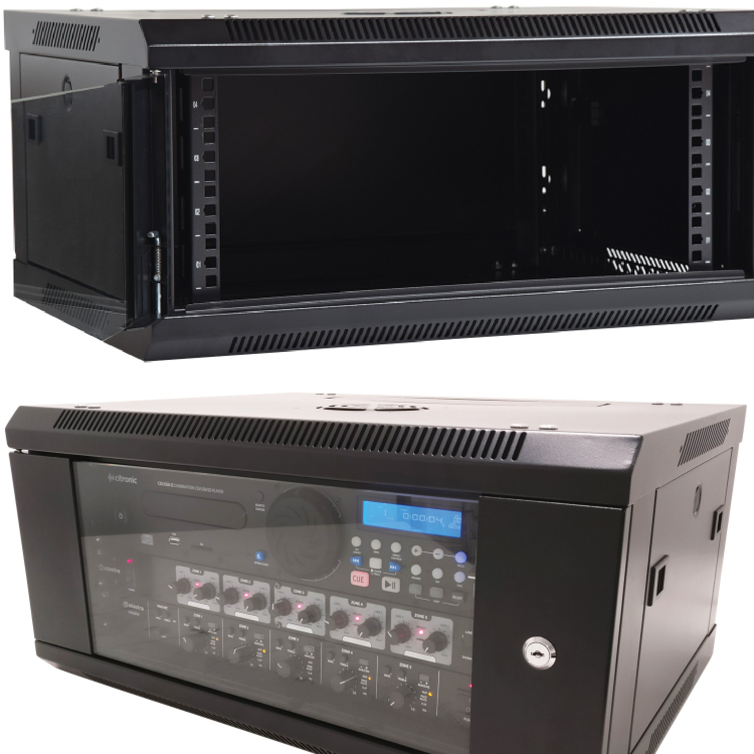 Gli armadi per rack da 19 pollici di Adastra sono progettati per l’installazione di apparecchiature professionali. Realizzati in acciaio laminato a freddo, offrono resistenza e stabilità grazie ai bordi piegati. I pannelli laterali sono removibili e la porta frontale è bloccabile, con vetro temperato da 5 mm.