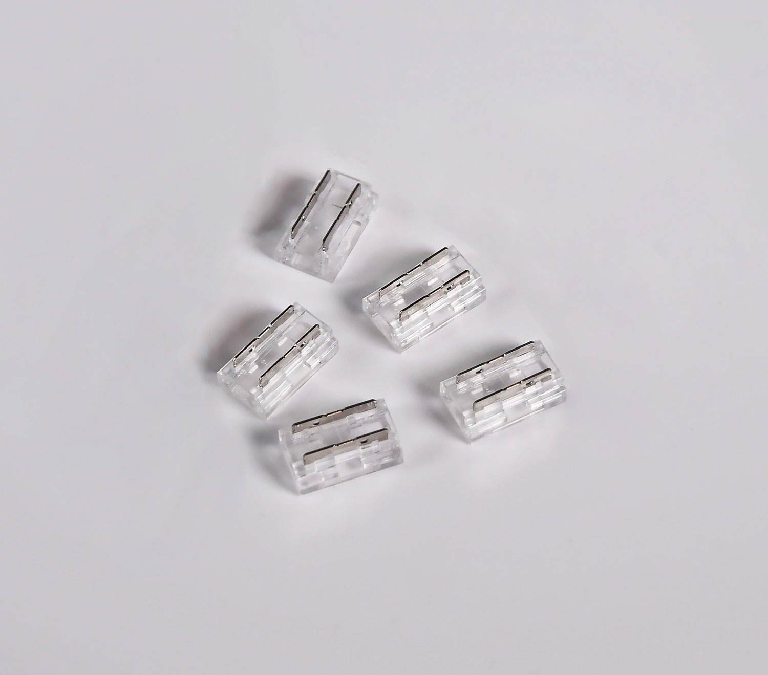 - Inserisci la striscia LED nel connettore nella configurazione desiderata e crimpa con una pinza.