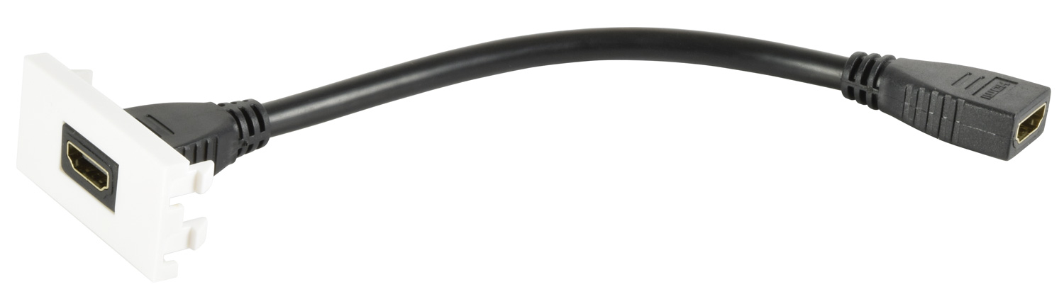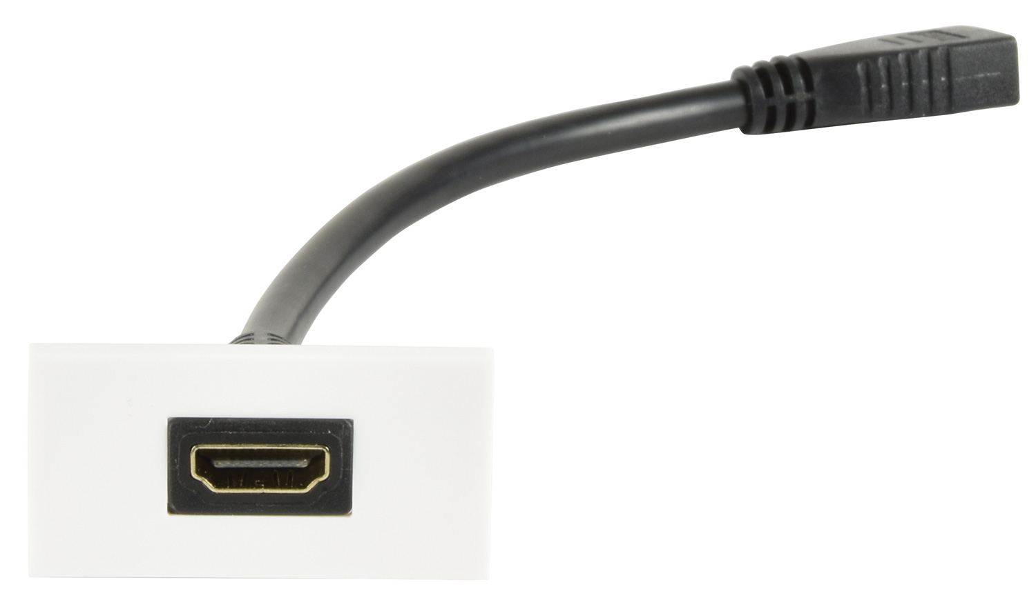 Il modulo placca a muro HDMI di AV:Link è la soluzione perfetta per connettere dispositivi HD senza fili visibili. Con dimensioni di 50mm x 25mm, questo modulo include una presa HDMI placcata in oro e un cavo femmina posteriore.