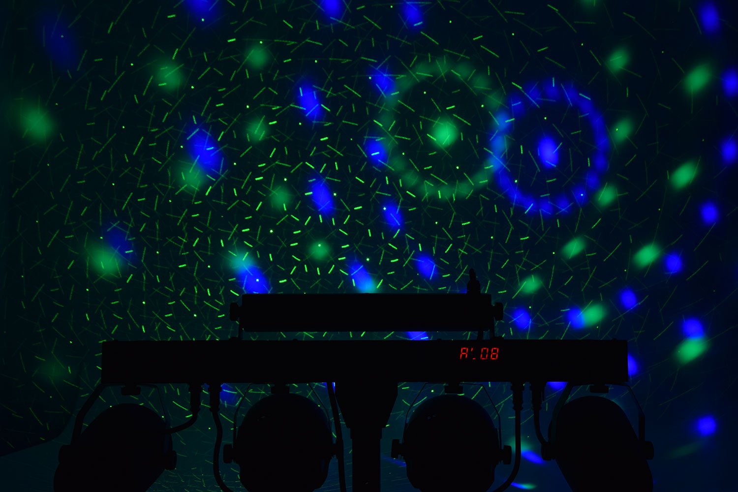 • Barra multi-effetti con 2 luci PAR RGBW da 12W, effetto Ball RGBW da 12W, laser rosso/verde e unità UV/strobo da 24W