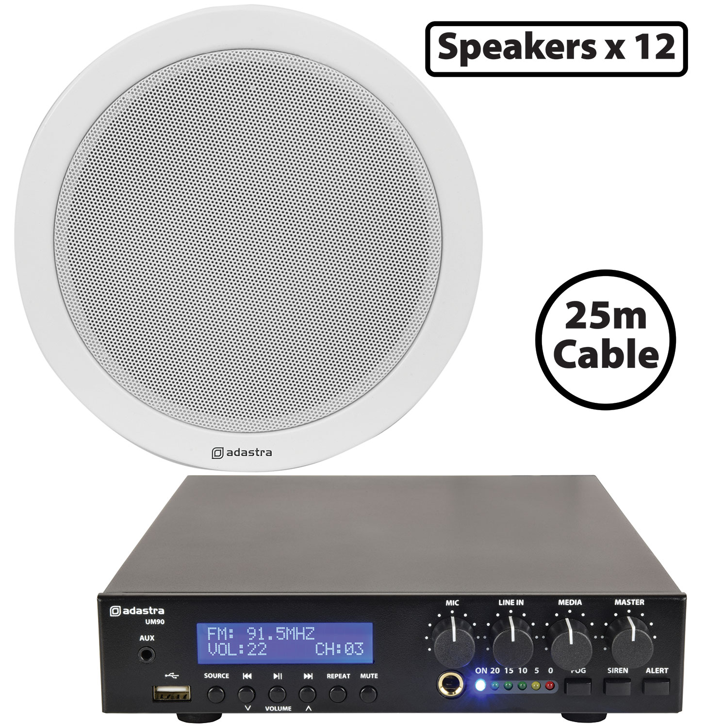 Gli amplificatori della serie UM offrono USB, Bluetooth e sintonizzatore FM e possono essere montati a rack in coppia o facilmente fissati a una parete o sotto un piano di lavoro. Ogni amplificatore della serie UM include un ingresso microfono da 6.3mm e un ingresso RCA per lettori mp3, smartphone, computer, ecc.