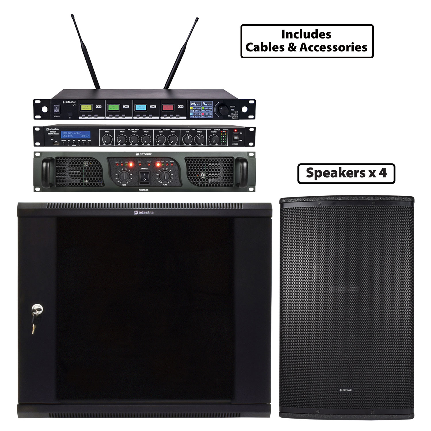 Il pacchetto PA Citronic è la soluzione ideale per installazioni in grandi sale fino a 180mq. Questo sistema completo è progettato per offrire un’esperienza audio eccezionale, con componenti di alta qualità.