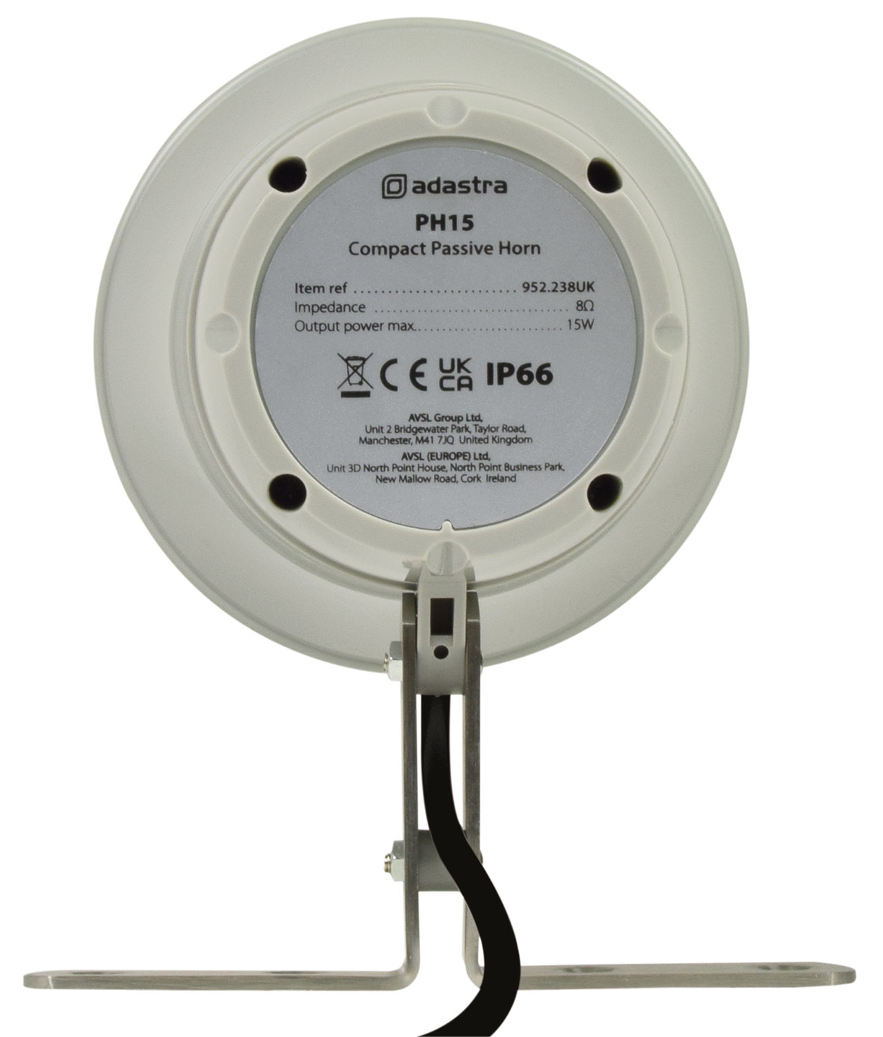 Il PH15 Waterproof ABS Horn Speaker di Adastra è un diffusore a tromba compatto e impermeabile, realizzato in plastica ABS ad alta resistenza agli urti. Equipaggiato con un driver a compressione da 15W ad alta efficienza, è perfetto per annunci di sicurezza e indirizzi pubblici sia all’interno che all’esterno.