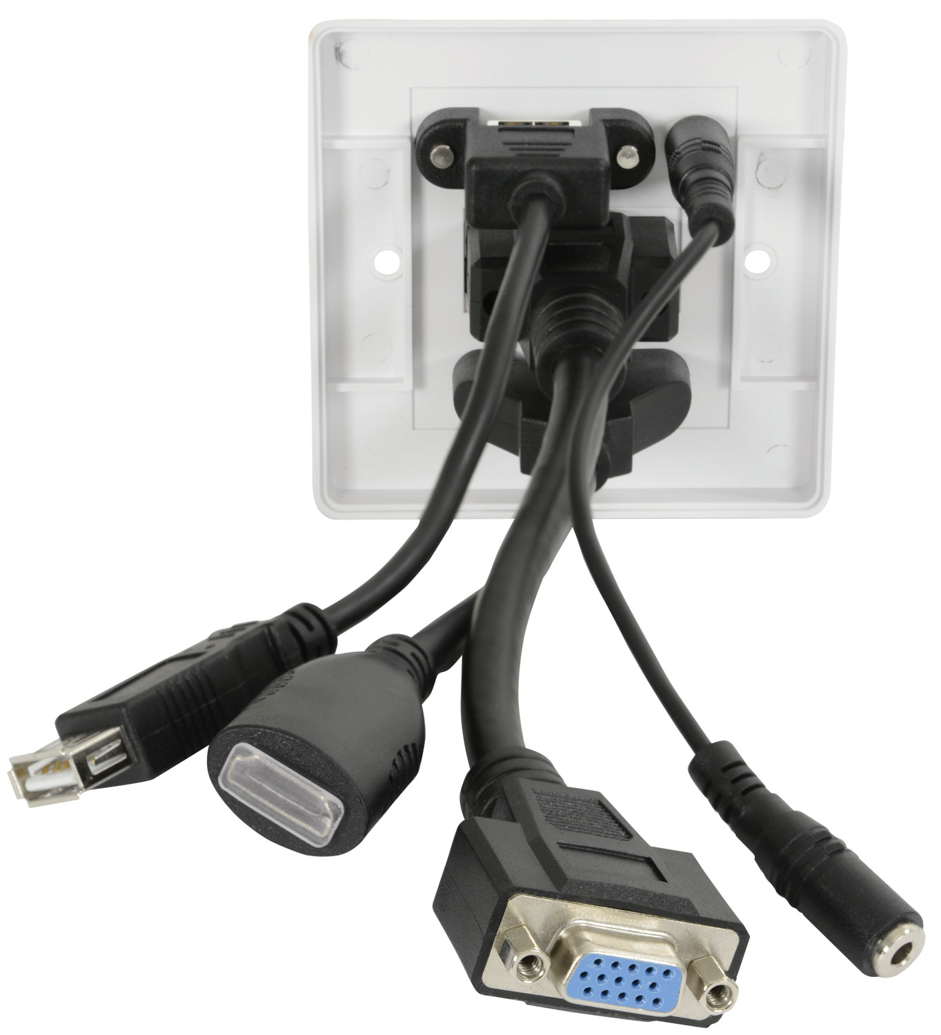 Un metodo semplice e conveniente per combinare tutte le tue connessioni multimediali in un unico posto. Questa pratica placca a muro 1-gang ospita prese HDMI 4K, VGA, USB e audio da 3.5mm, mantenendo il tuo ambiente di lavoro ordinato e libero da cavi.