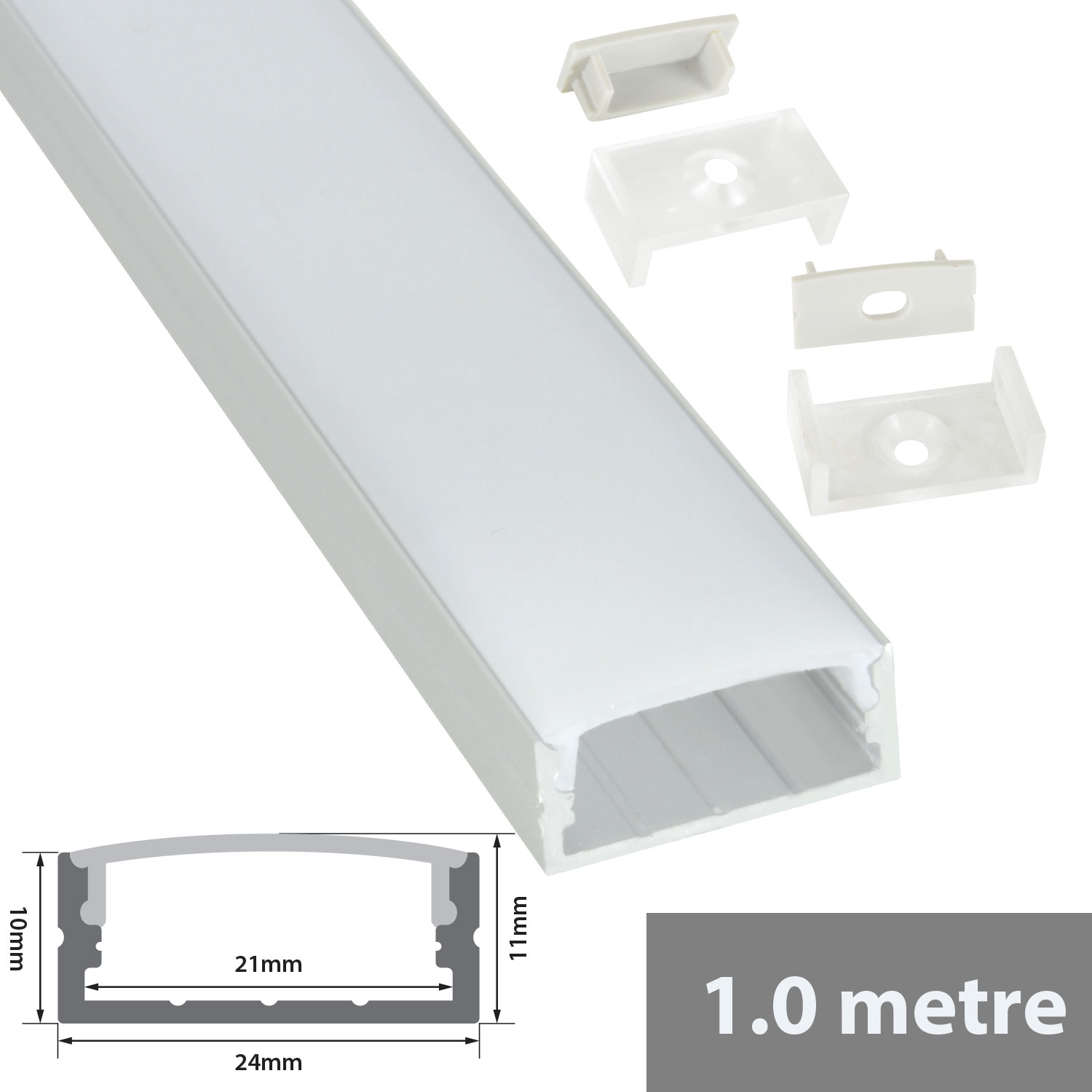 Il profilo in alluminio estruso con sezione ampia e diffusore a corona è perfetto per l’installazione di strisce LED. Ideale per illuminare mobili e dettagli architettonici.