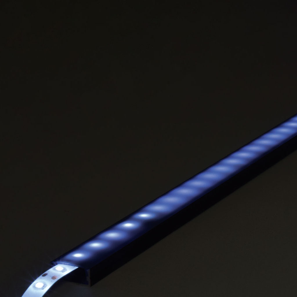 Il profilo in alluminio estruso con sezione ampia e diffusore a corona è perfetto per l’installazione di strisce LED. Ideale per l’illuminazione di mobili e dettagli architettonici.