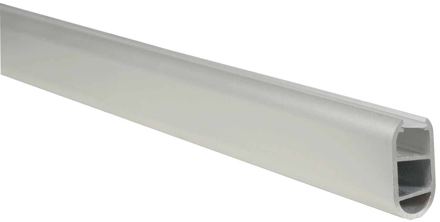 Il profilo in alluminio estruso, con una sezione ovale e un diffusore angolato, è progettato per ospitare strisce LED, trasformandosi in un’asta luminosa per guardaroba. È fornito con tappi terminali e ganci per sospensione, rendendo l’installazione semplice e personalizzabile.