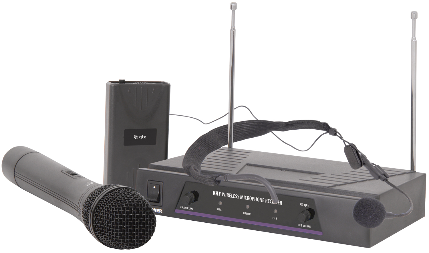 Il sistema wireless VHF di QTX offre una soluzione versatile per eventi e spettacoli. Con un ricevitore da mezza unità 1U, include un trasmettitore portatile e un trasmettitore beltpack con microfono headset neckband.