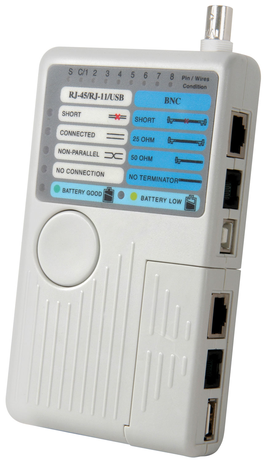 - Compatibile con tutti i tipi comuni di rete: RJ45 (UTP/STP), RJ11, USB e BNC.