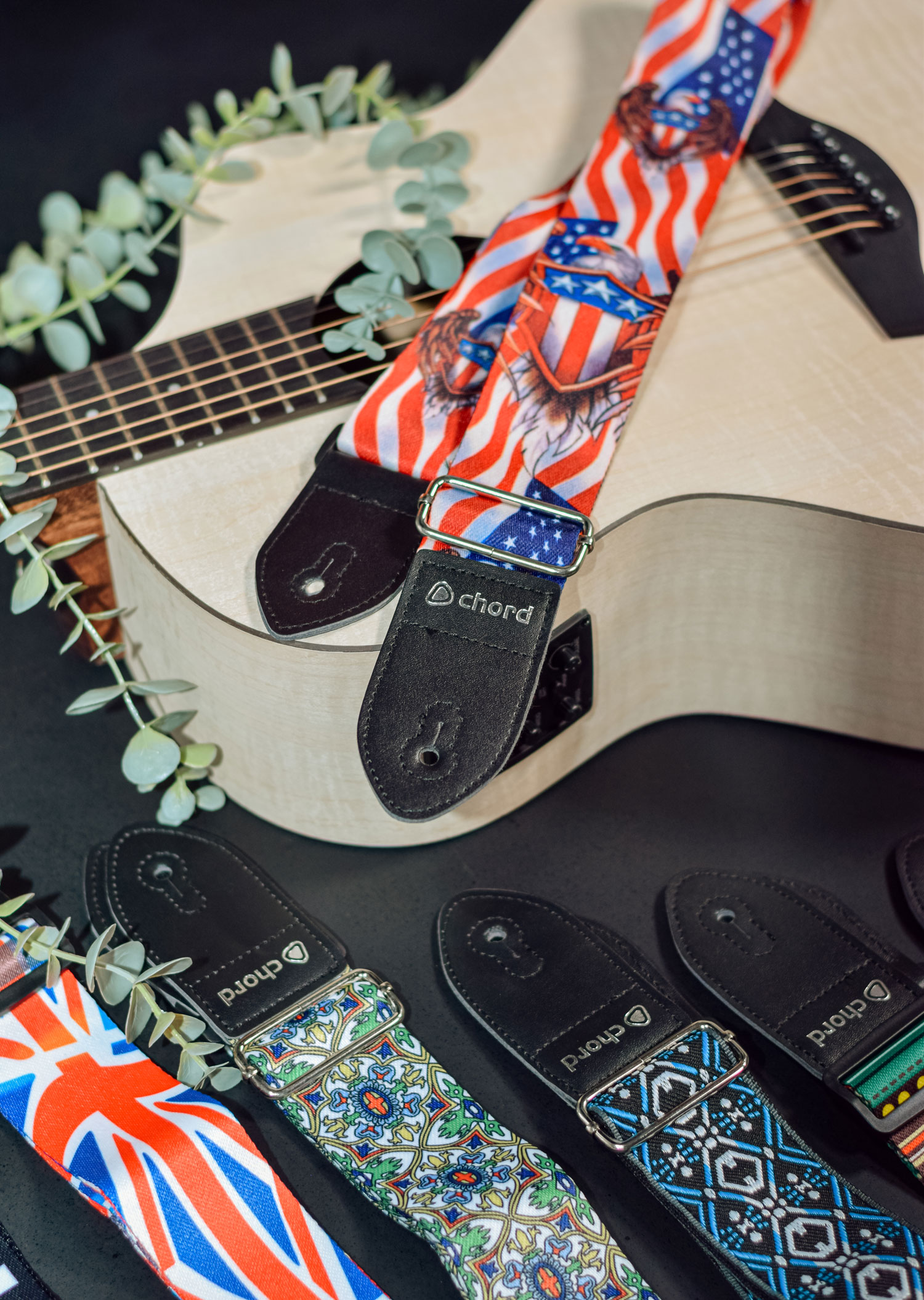 Le tracolle Deluxe per chitarra di Chord sono realizzate con un robusto materiale in nylon a doppio strato, fermi in pelle PU e una fibbia metallica per la regolazione della lunghezza. Ogni tracolla è stampata con un design a tema unico.